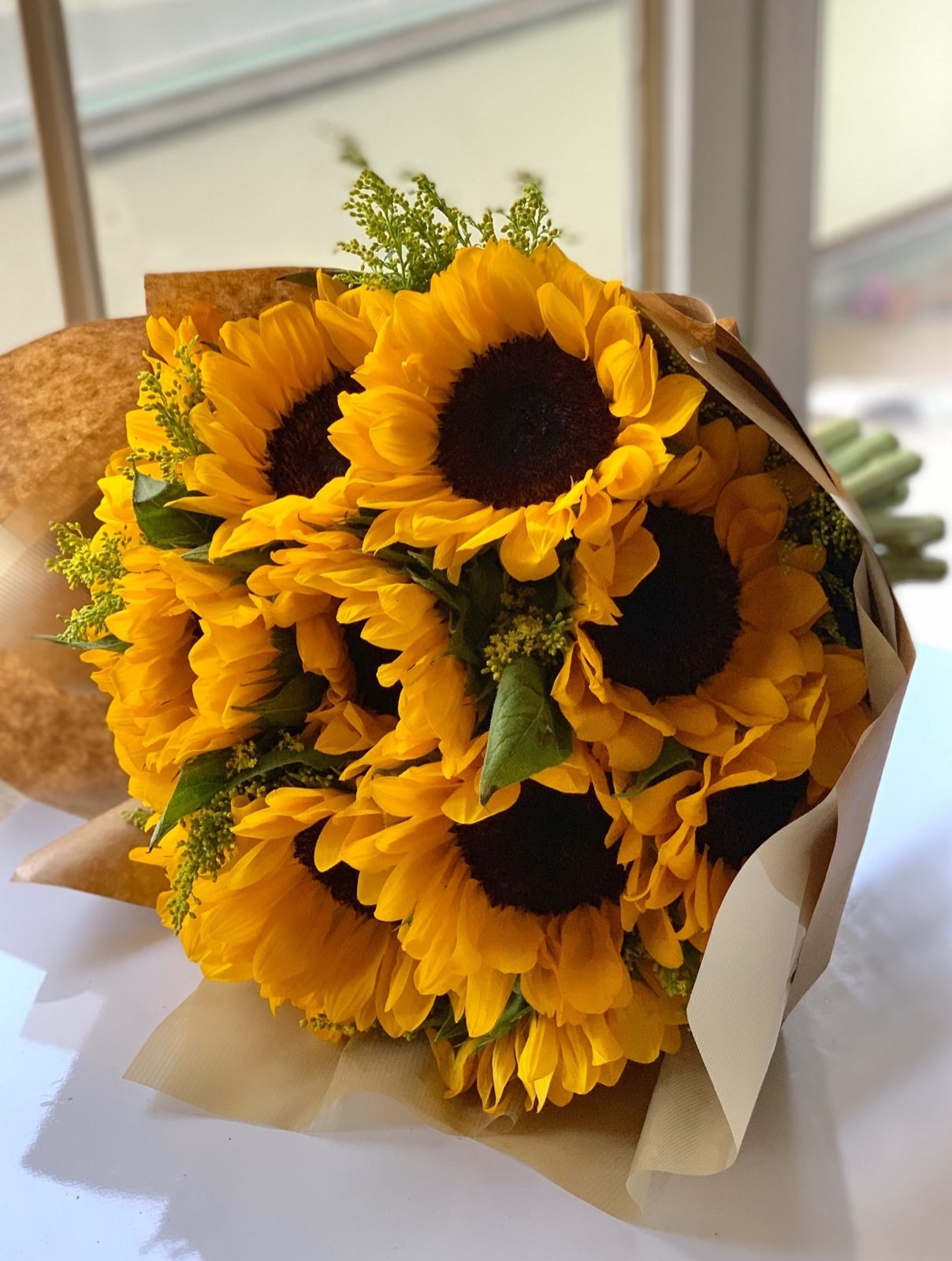 Girassóis de alta qualidade, ornamentado com tango e envolvido com embalagem especial.